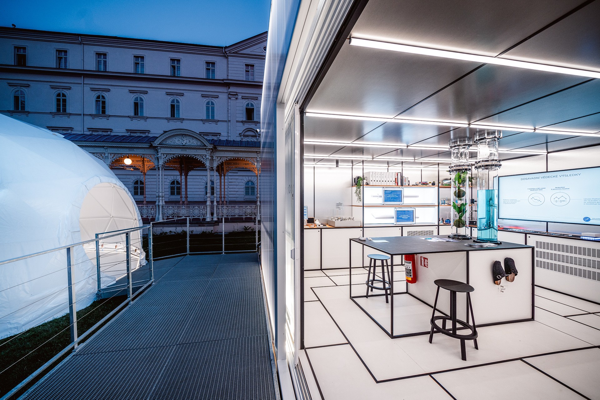Najdete tam velké digitální rentgeny, které ukazují rozdíl mezi zařízením na nahřívání tabáku a e-cigaretou. Dále holografické boxy s ukázkami bezdýmných zařízení a také si můžete vyzkoušet virtuální 3D brýle s interaktivním kvízem a CO metrem na měření oxidu uhelnatého v plicích.